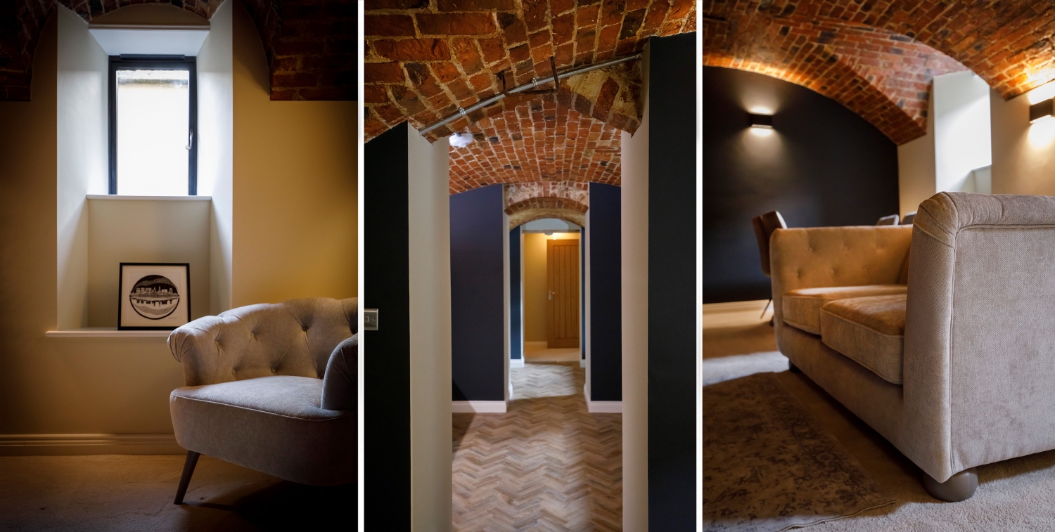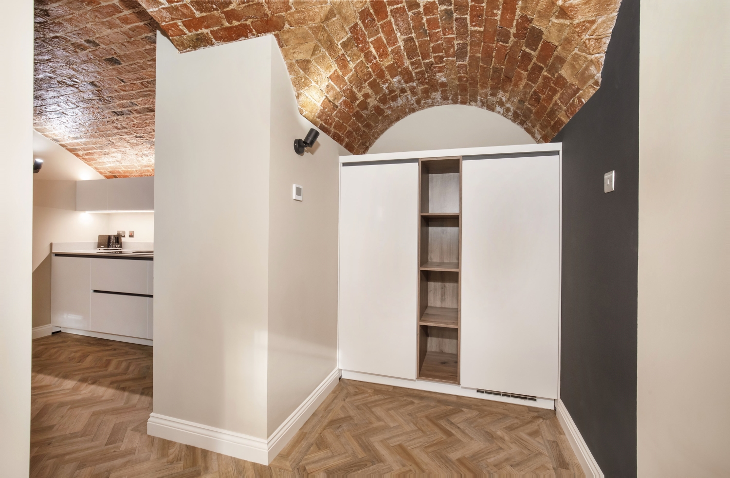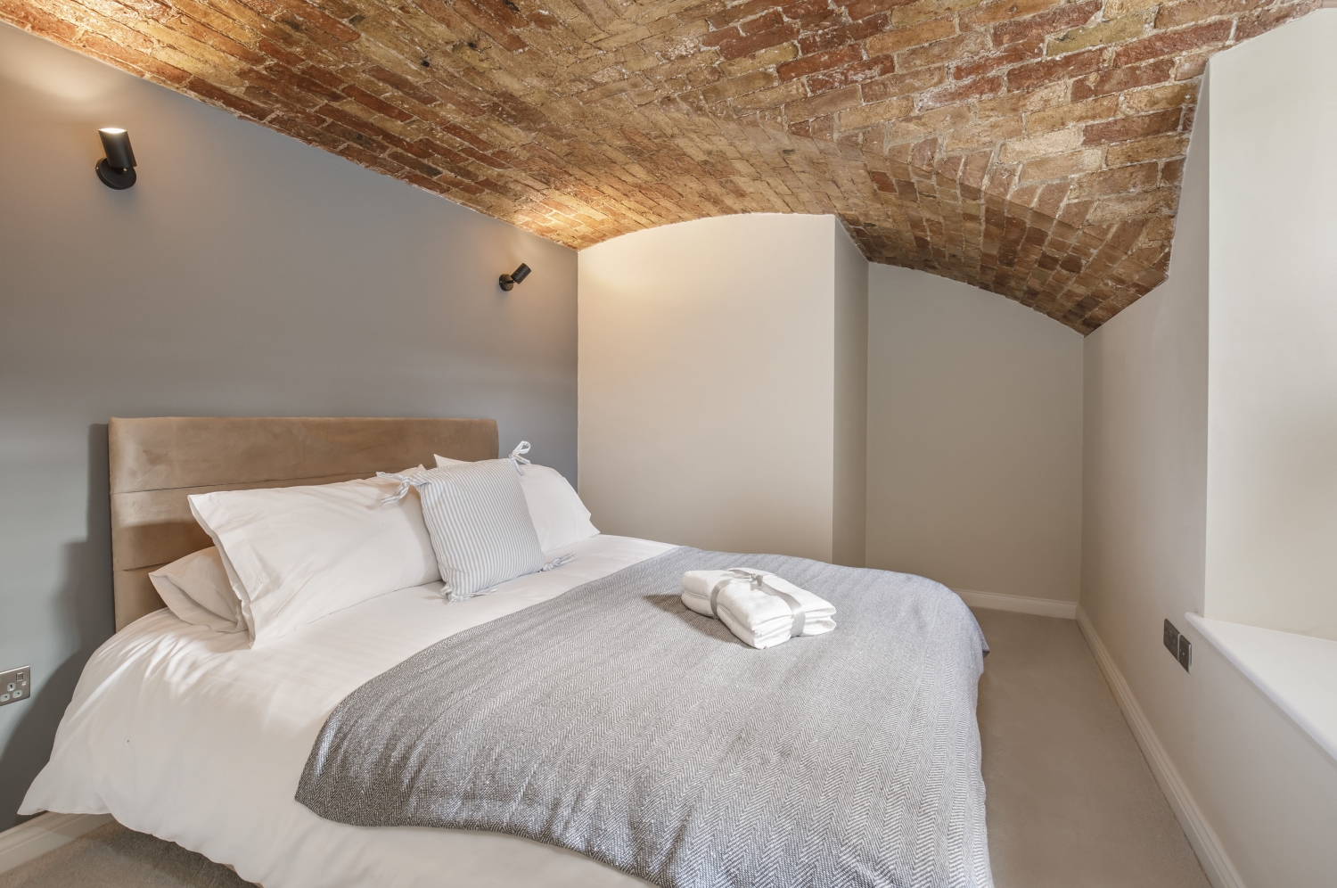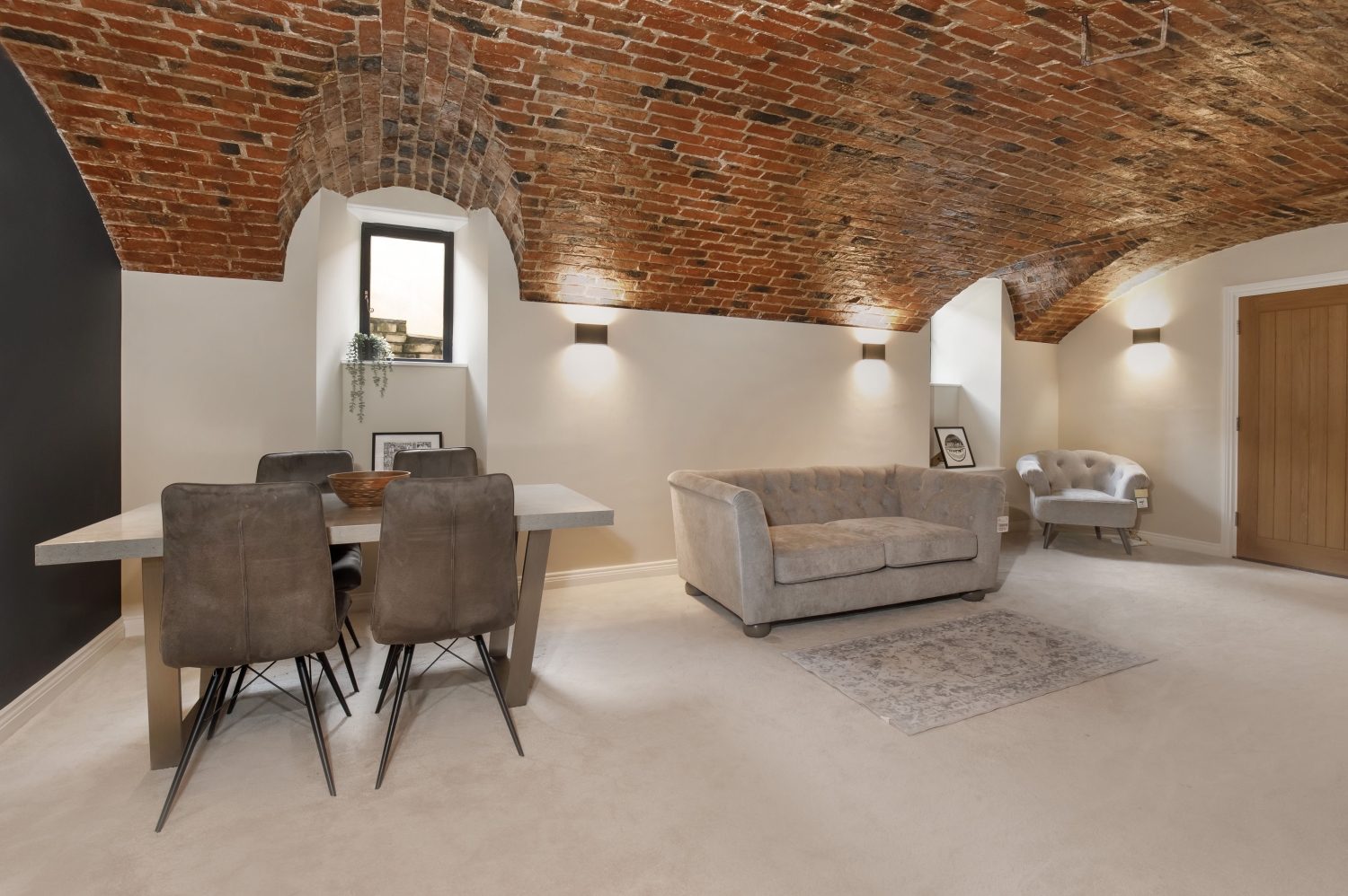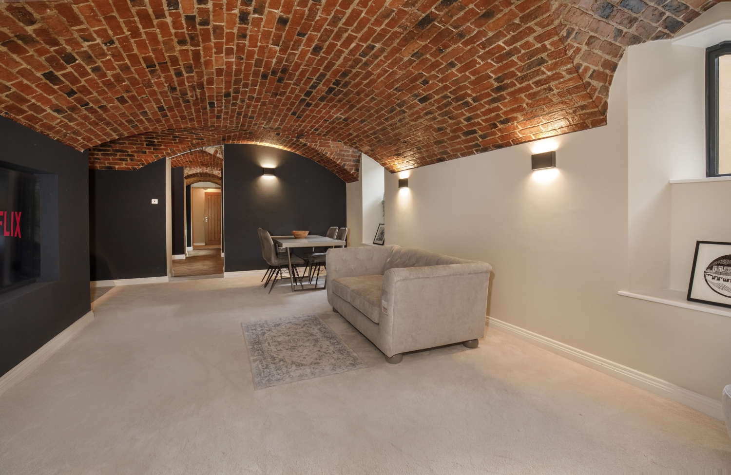 - Exposed brick vaulted ceilings