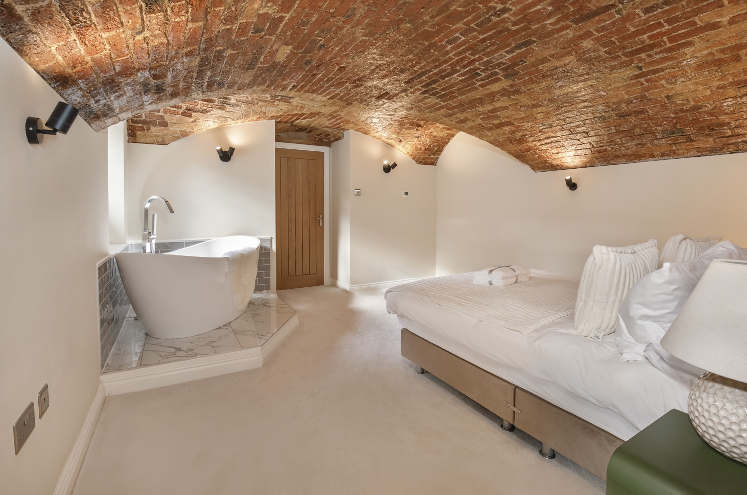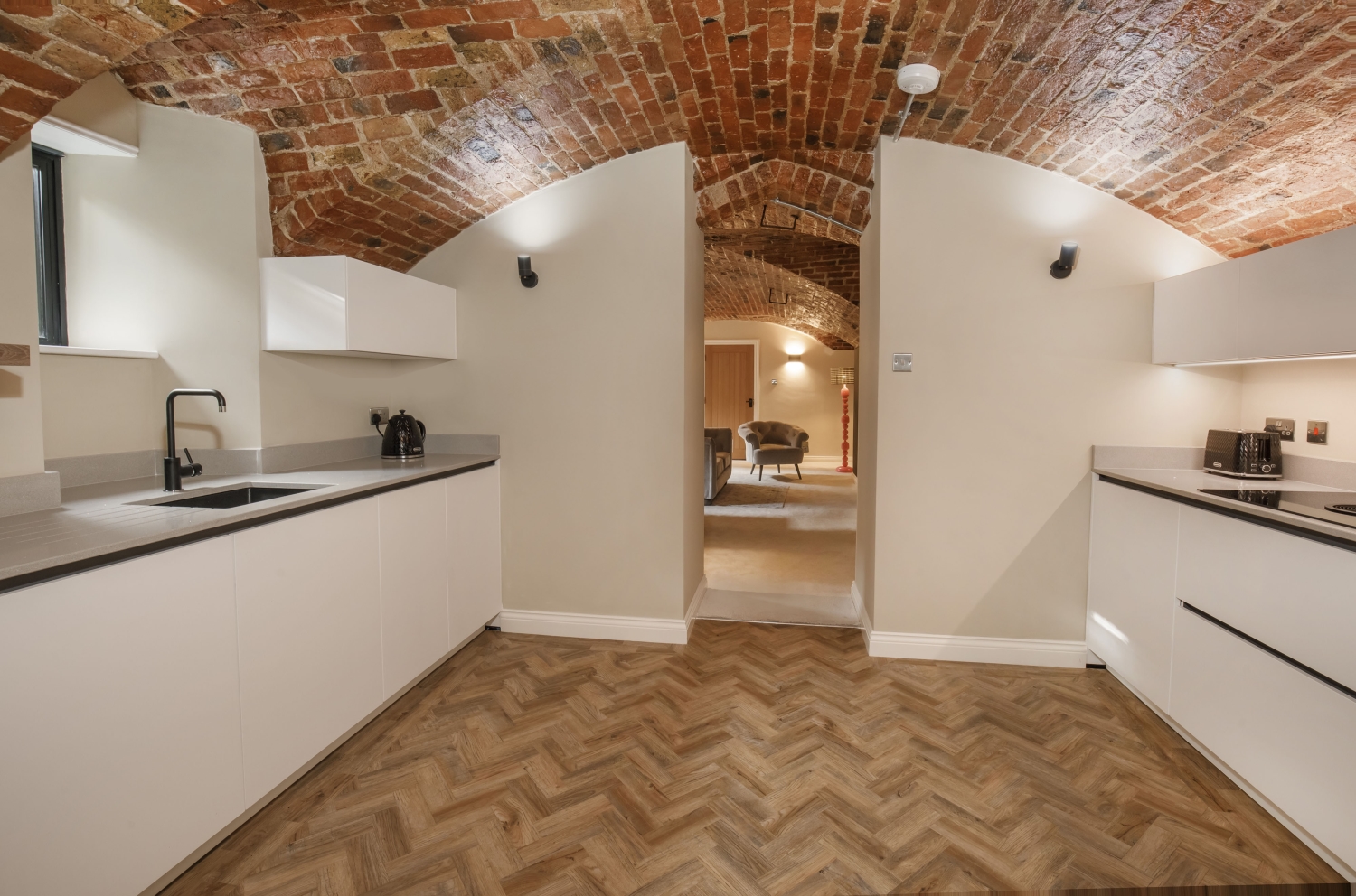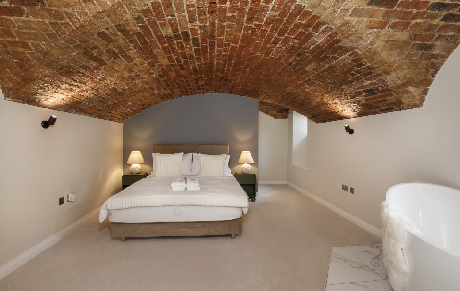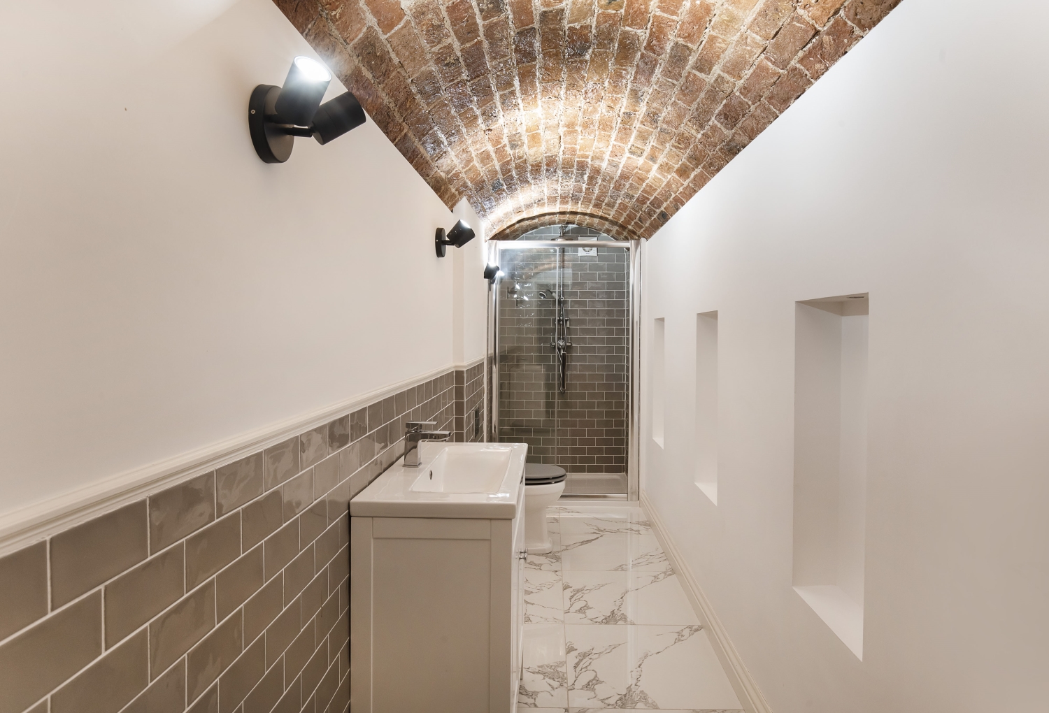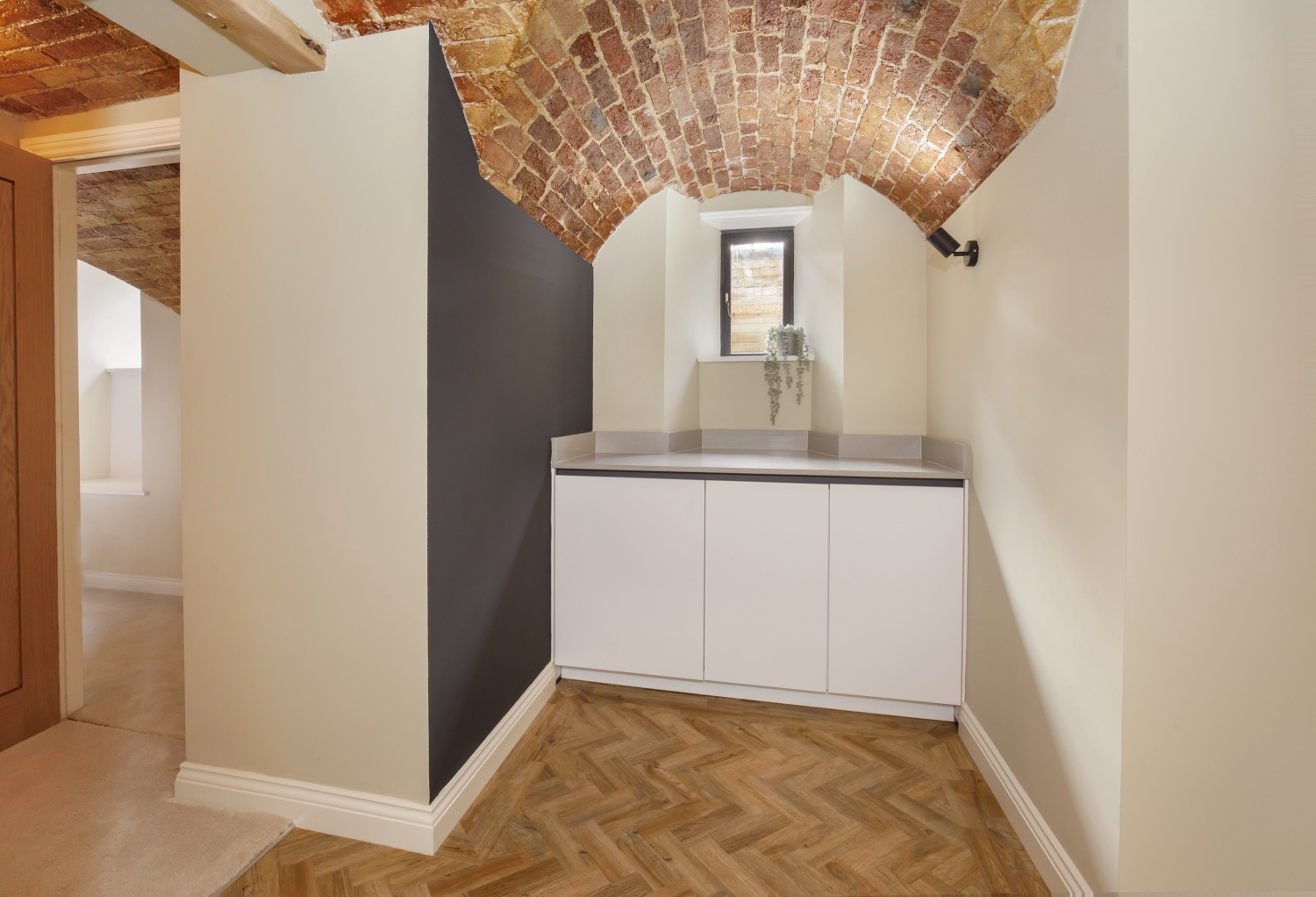 - Exposed brick vaulted ceilings