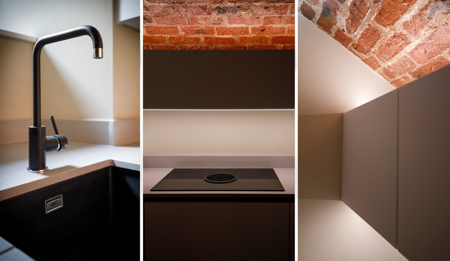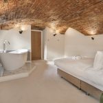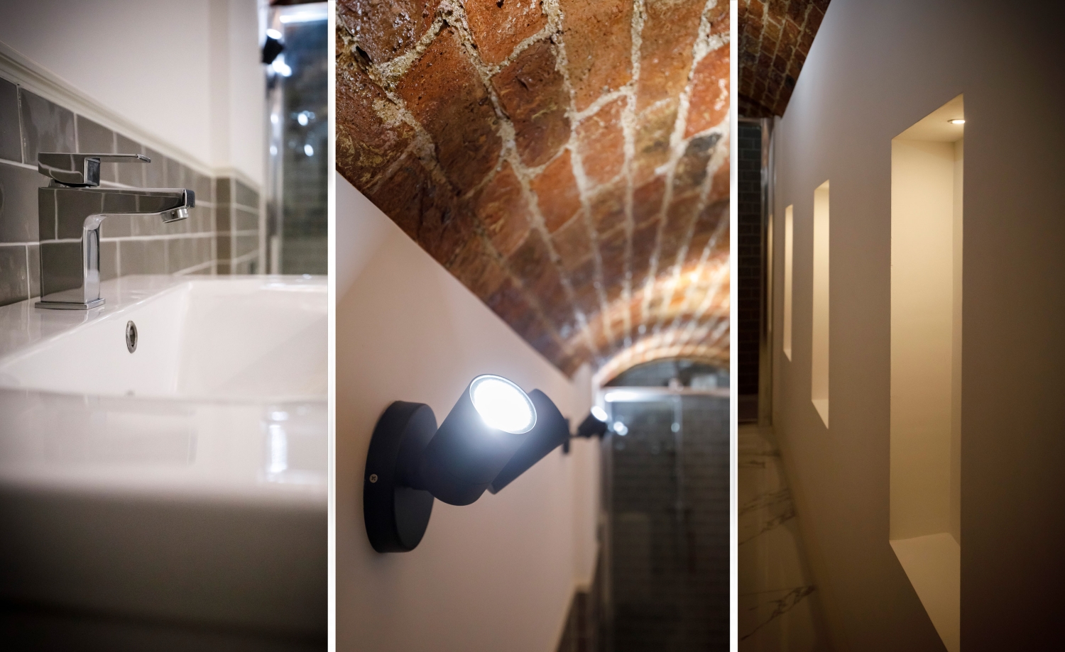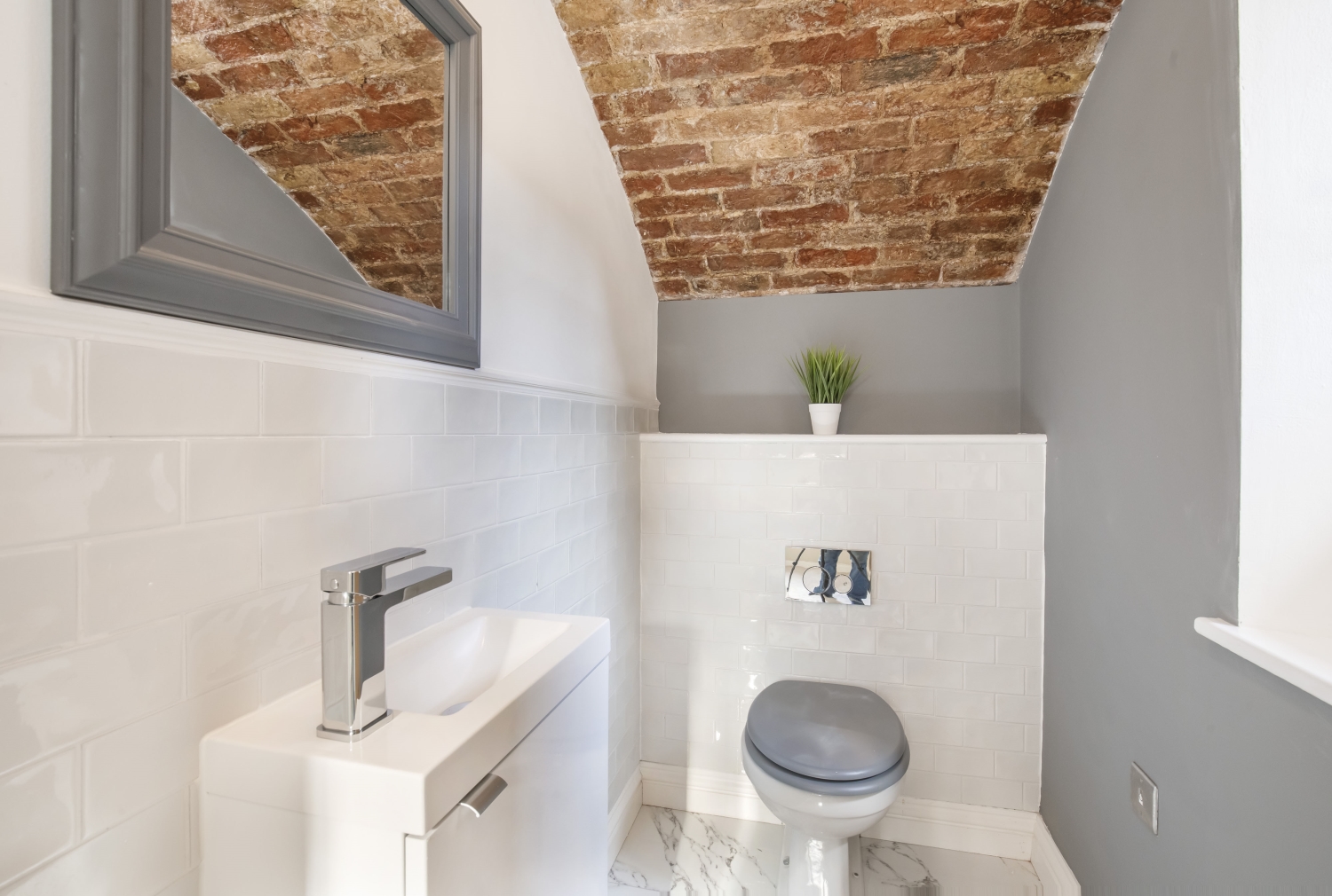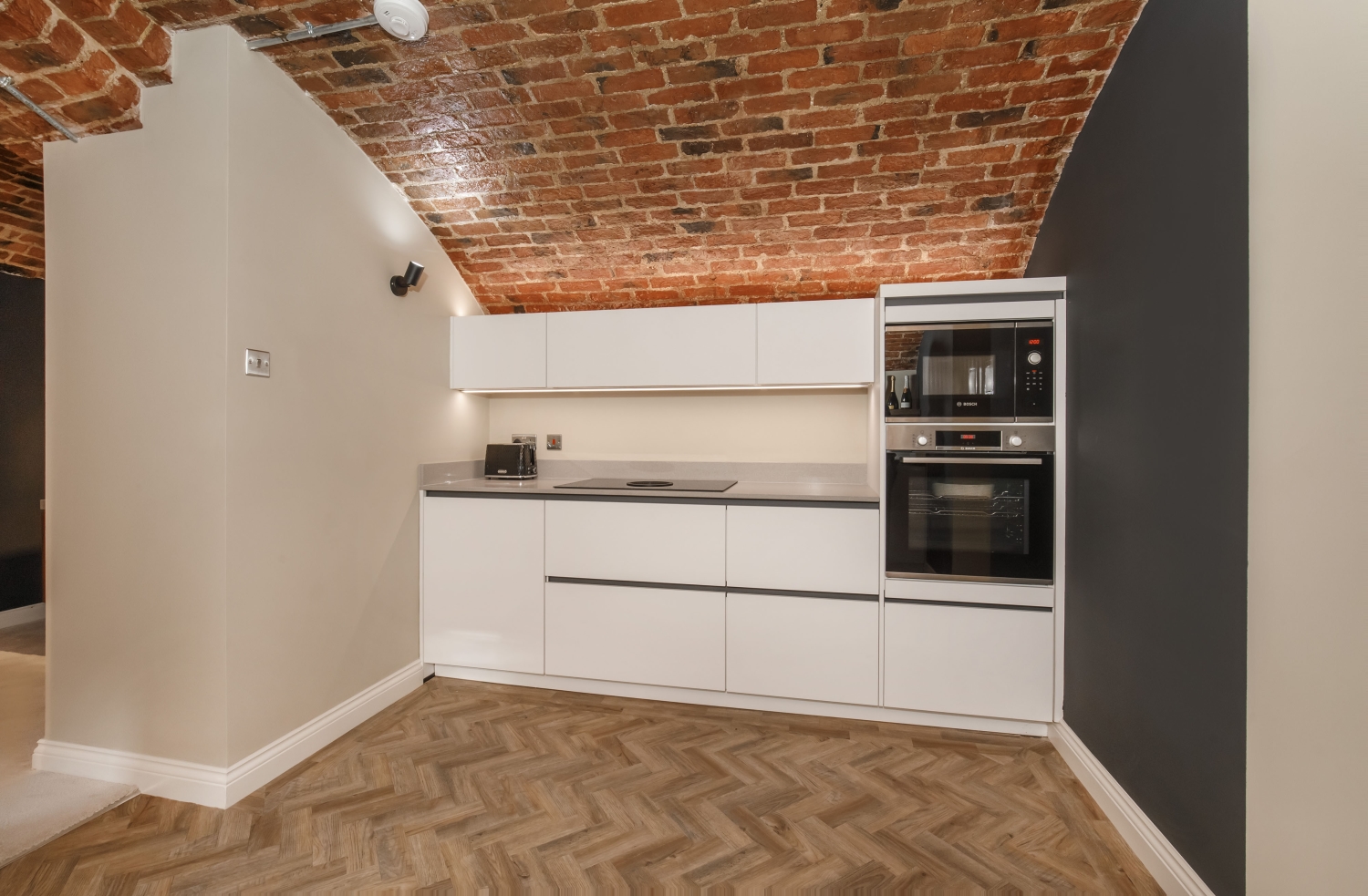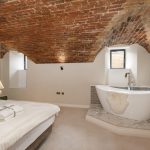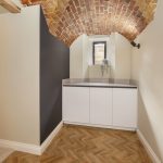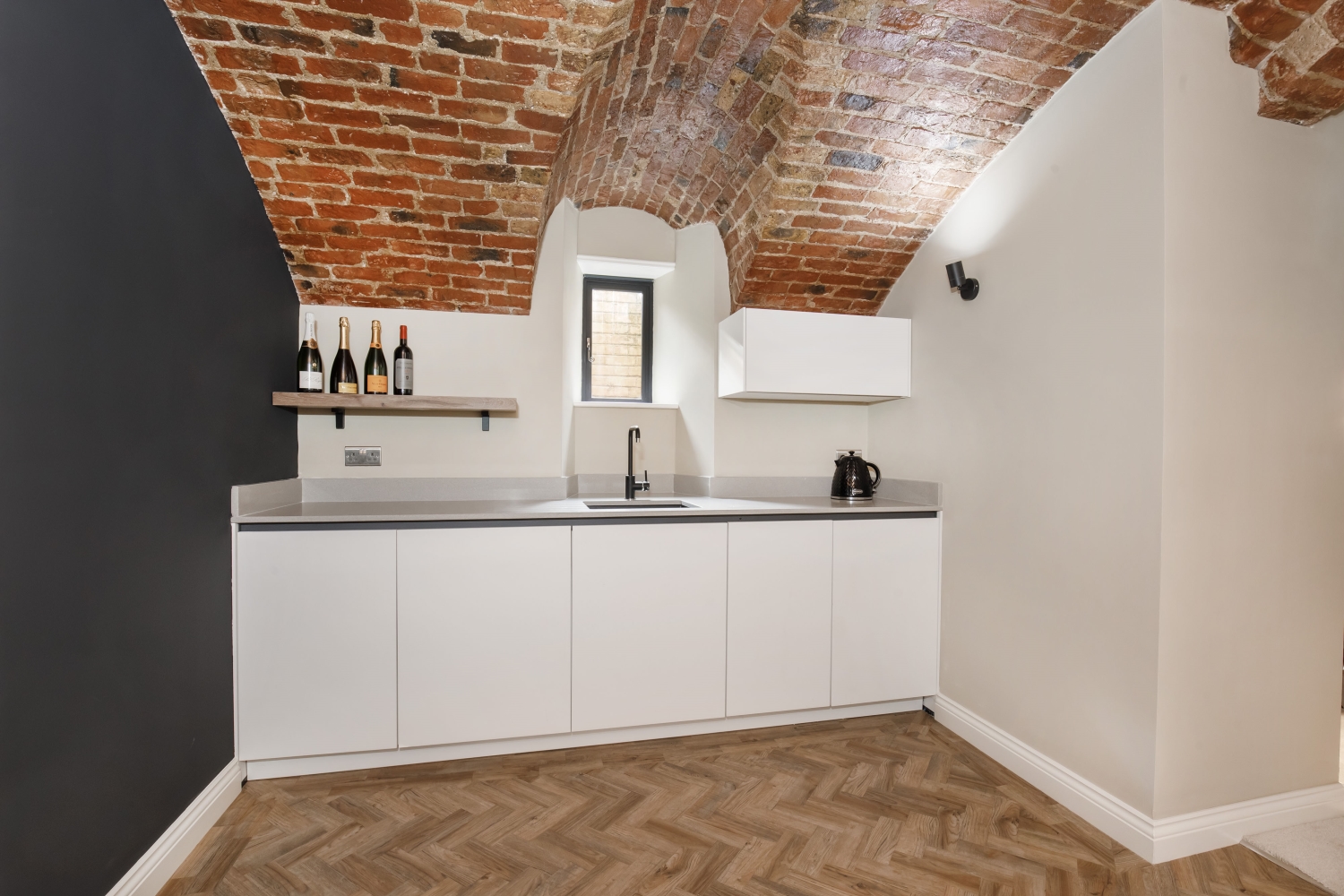 - Exposed brick vaulted ceilings