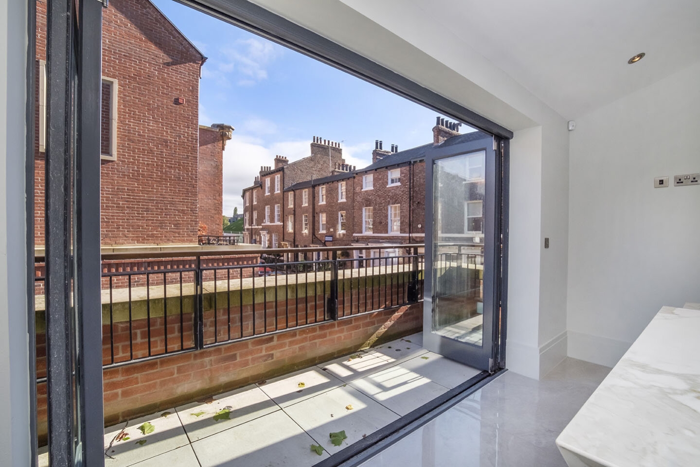 This is a rare opportunity to live in the heart of York in a truly luxurious townhouse. Forming part of an exclusive, high-specification development within a beautifully restored former fire station, this exceptional four-bedroom unfurnished home blends character with contemporary elegance. From the carefully restored stone façade to the refined interior finishes, every detail has been thoughtfully designed. Highlights include underfloor heating throughout, marble worktops, and breath taking views over the River Ouse.Upon entering, the property immediately impresses with its sense of space and luxury. The bright and airy living area enjoys picturesque river views, complemented by sleek white floor tiles, double-glazed windows, and an abundance of natural light.The stylish modern kitchen features white marble worktops and premium integrated appliances, including two ovens, two grills, an induction hob, fridge/freezer, wine cooler, washer/dryer, and dishwasher. A built-in four-seater marble dining table adds both function and sophistication. Large bi-fold doors open onto a private patio area, perfect for entertaining.The principal bedroom is immaculately presented and benefits from a Juliet balcony overlooking the river. It also includes a generous walk-through wardrobe and a luxurious ensuite bathroom complete with dual basins, freestanding bath, heated towel rail, and a double rainfall shower. A second double bedroom with a built-in wardrobe is located across the landing.The top floor offers two further double bedrooms and a beautifully finished family bathroom, featuring a mosaic tiled statement wall with an arched window, bath with handheld shower, WC, basin, and heated towel rail.Additional benefits include a garage with space for at least two cars and underfloor heating throughout, controlled via a HIVE active thermostat.Available from 27th February 2026No pets | No students | No sharersHolding Deposit: £691.00